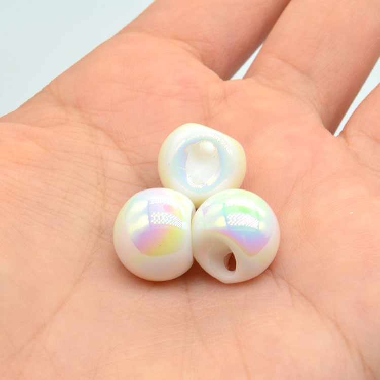 背孔珠的核心优势是“即串即用”,是DIY饰品与批发采购的“流量款”。在手链、项链串制中,可与其他串珠自由搭配,通过线绳贯穿形成整体,尤其适合马卡龙色亚克力背孔珠、卡通造型背孔珠等年轻化款式;手机链、钥匙扣创作中,背孔珠可直接穿挂在链条上,无需额外固定,适配快速组装需求;在服装辅料中,背孔珠常作为装饰元素串连在衣角、领口,增加设计层次感。