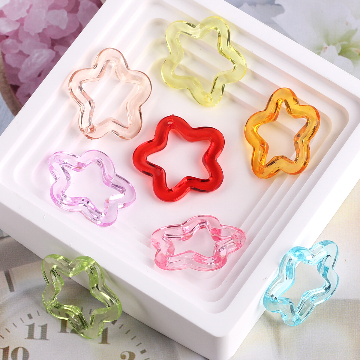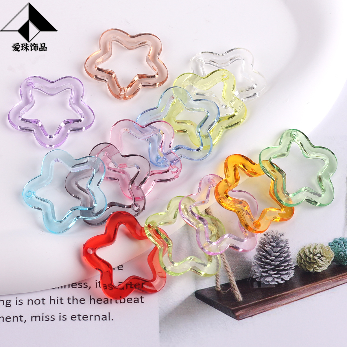 您的位置::首页吊孔珠亚克力透明彩色镂空吊孔五角星DIY耳环吊坠手机壳钥匙扣饰品配件