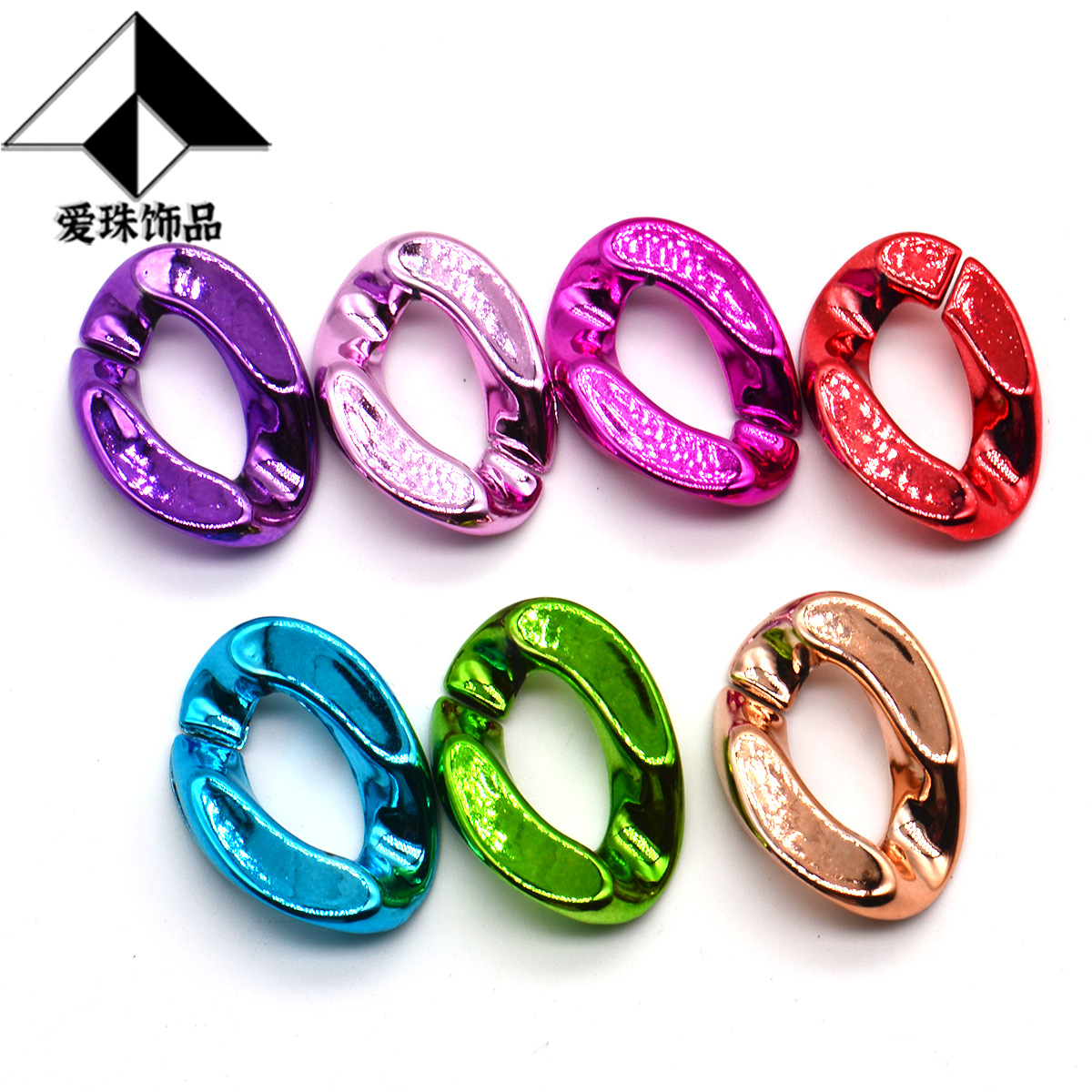 您的位置::首页链条/开口圈开口圈电镀UV彩色UV20*30MM链条扣DIY包包链条手机链饰品配件ABS